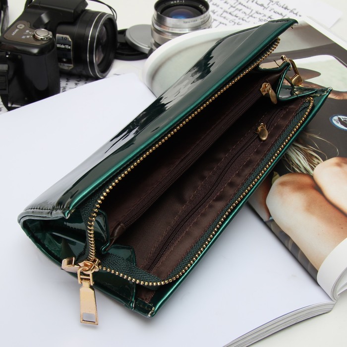 Клатч женский на молнии, 1 отдел с перегородкой, с ручкой, цвет зелёный