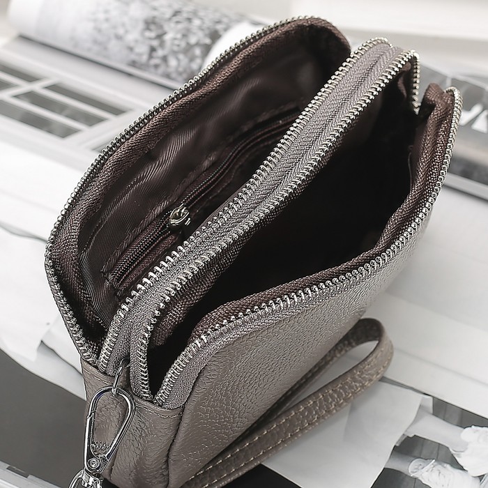 Клатч женский на молнии, 2 отдела, наружный карман, ручка, цвет серый