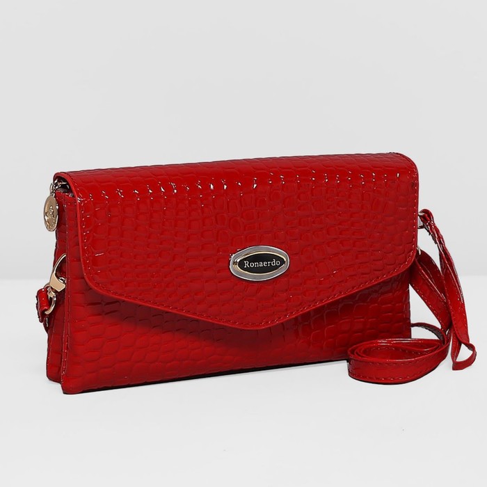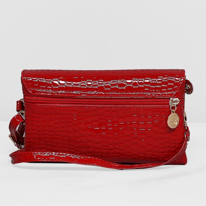 Клатч женский на молнии, 3 отдела, наружный карман, длинный ремень, цвет красный