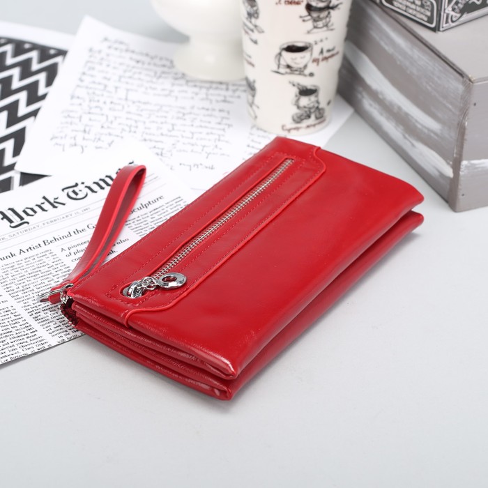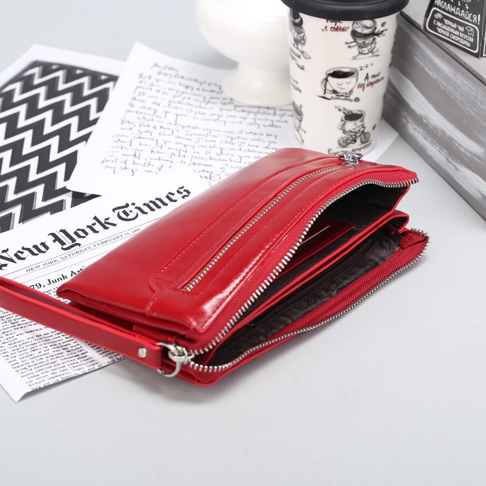 Клатч женский на молнии, 3 отдела, наружный карман, с ручкой, цвет красный