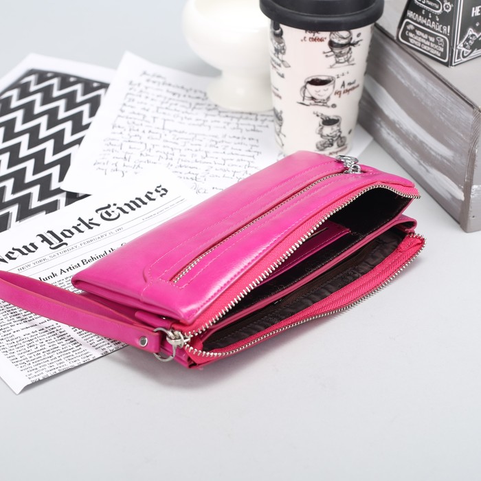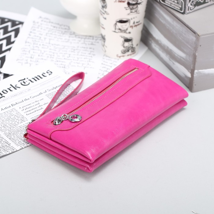 Клатч женский на молнии, 3 отдела, наружный карман, с ручкой, цвет малиновый
