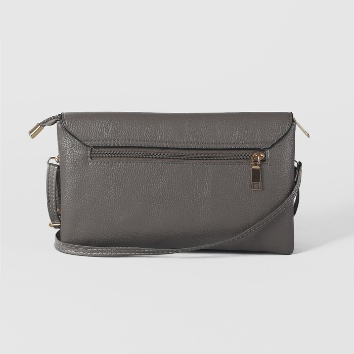 Клатч женский на молнии, 3 отдела, наружный карман, с ручкой, длинный ремень, цвет серый