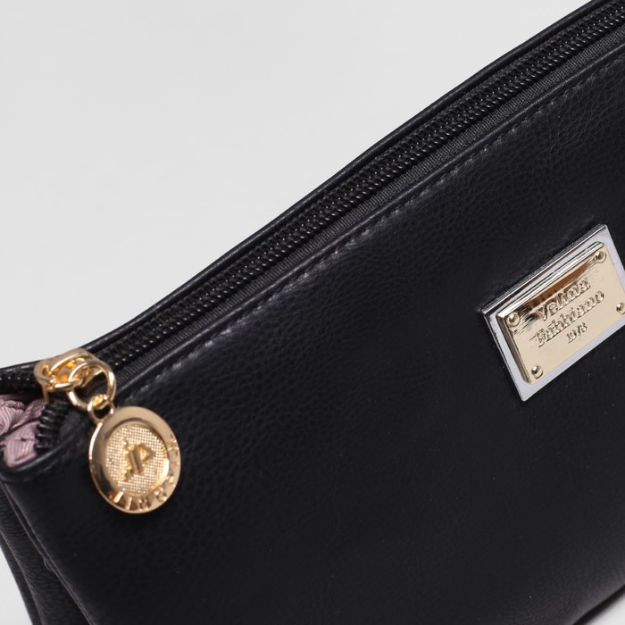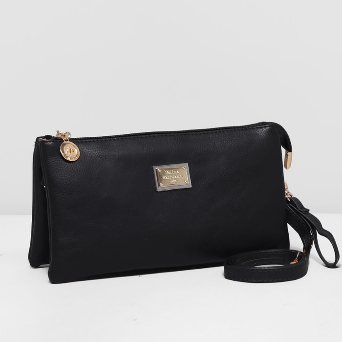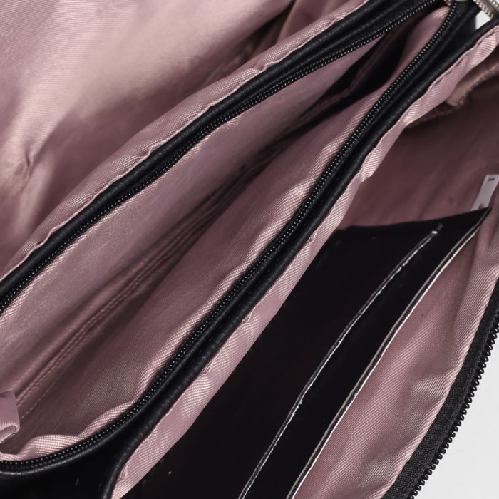 Клатч женский на молнии, 3 отдела, регулируемый ремень, цвет чёрный