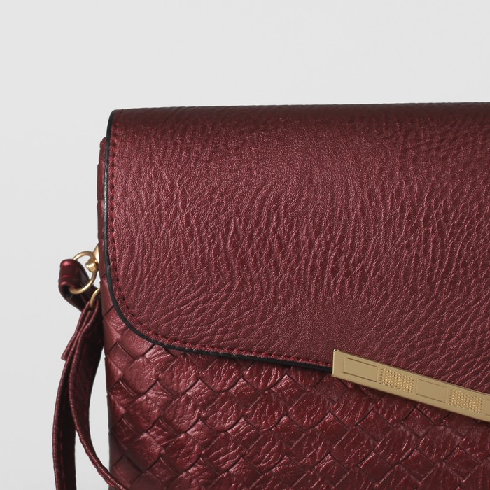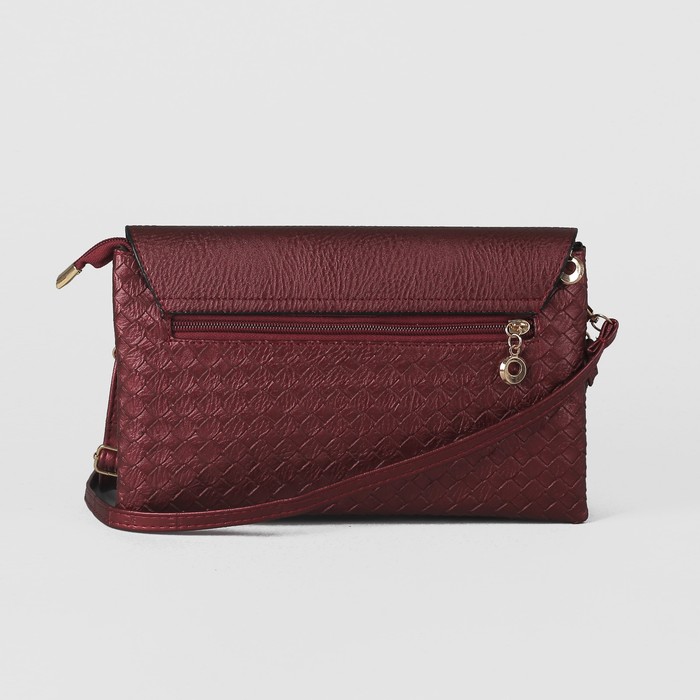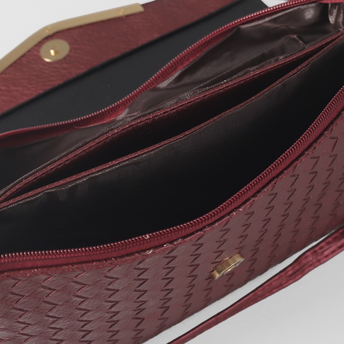 Клатч женский на молнии, 3 отдела, с ручкой, длинный ремень, цвет бордовый
