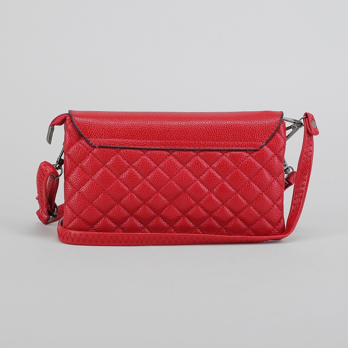 Клатч женский на молнии, 3 отдела, с ручкой, длинный ремень, цвет красный