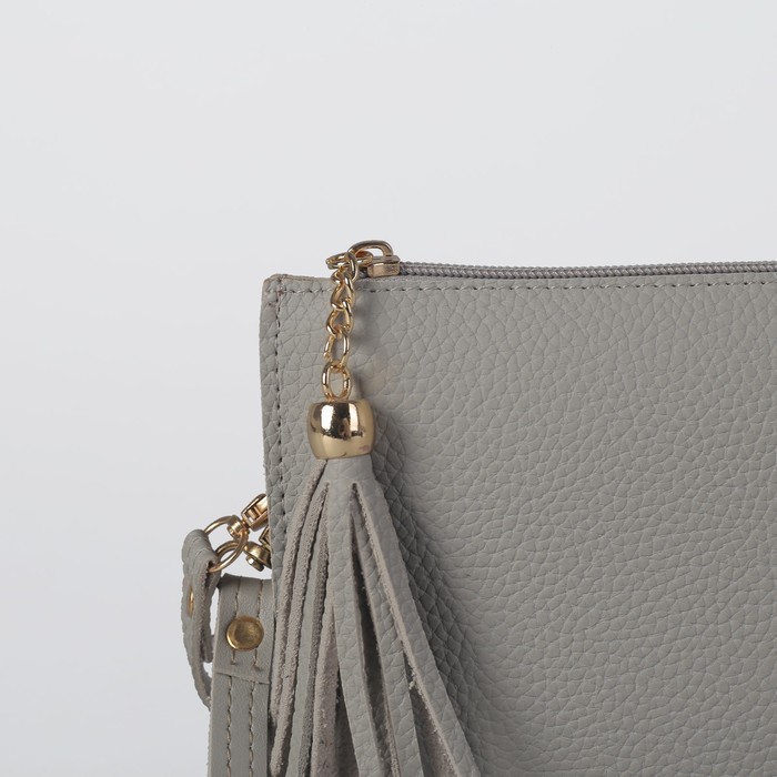 Клатч женский на молнии, 3 отдела, с ручкой, длинный ремень, цвет серый