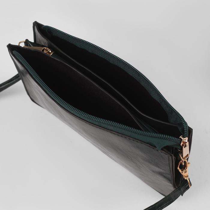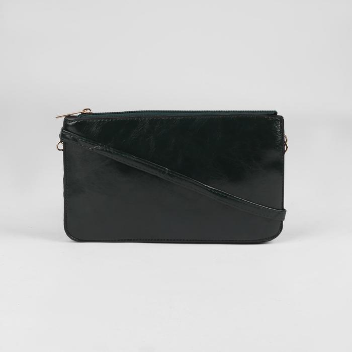 Клатч женский на молнии "Кристи", 3 отдела, длинный ремень, зелёный