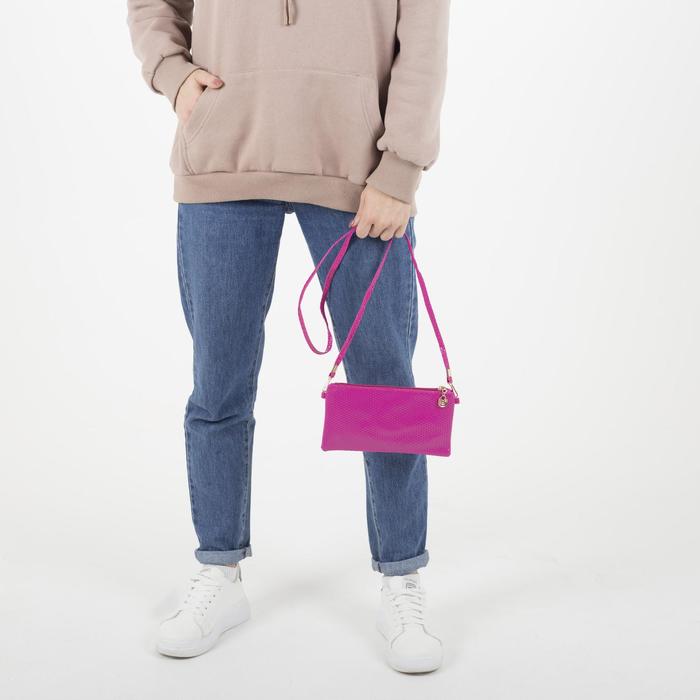 Клатч женский на молнии "Шик", 1 отдел на молнии, длинный ремень, цвет розовый