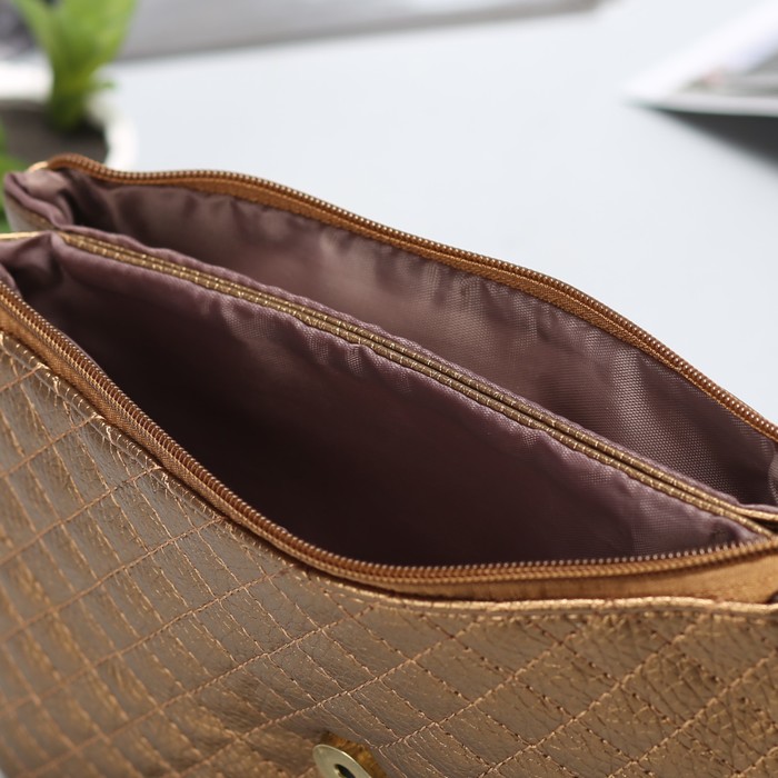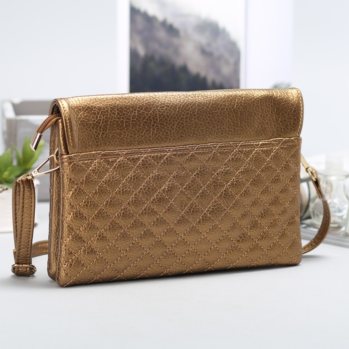 Клатч женский на молнии "Соты", 3 отдела, длинный ремень, цвет золотистый
