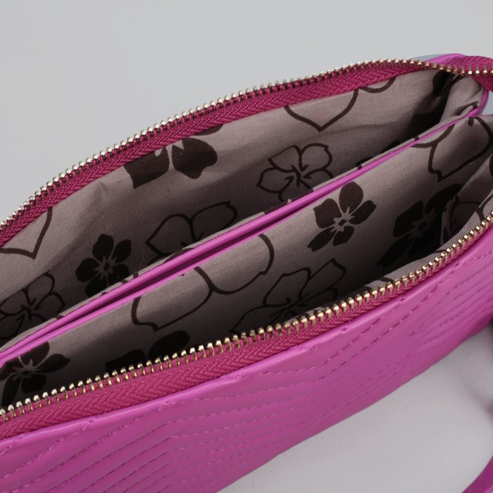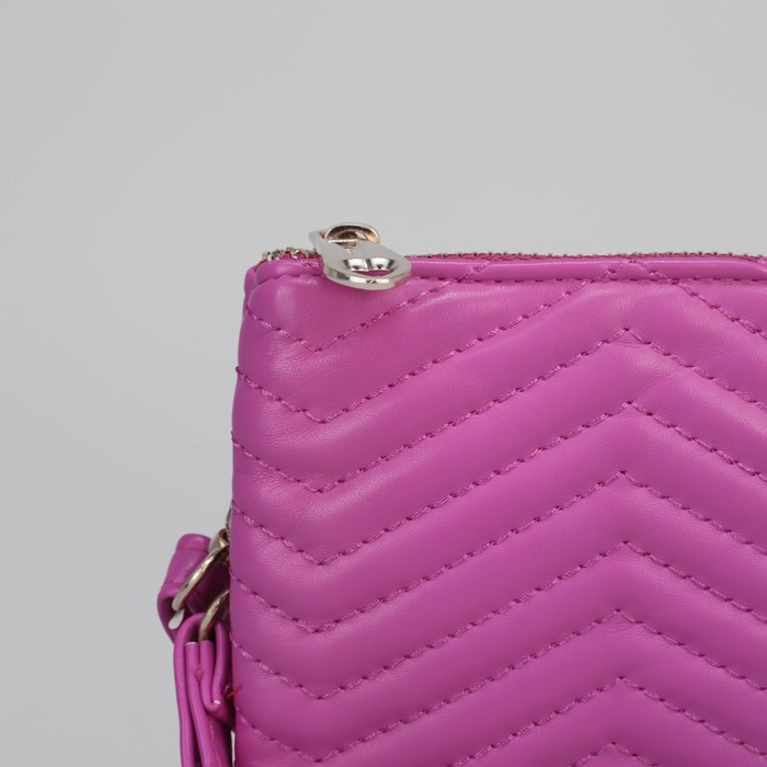 Клатч женский на молнии "Зигзаг", 3 отдела, с ручкой, длинный ремень, розовый