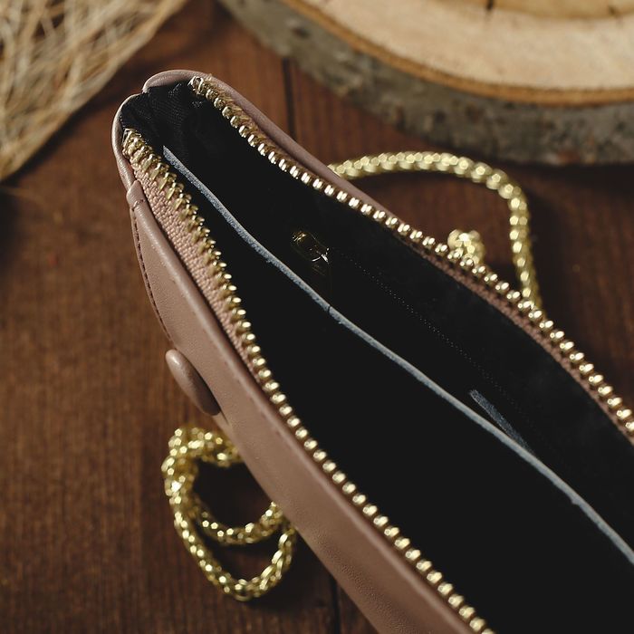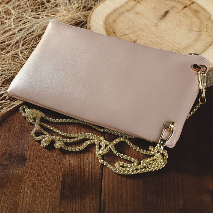 Клатч женский, отдел, для карт, наружный карман для телефона, длинная цепь, цвет пудровый