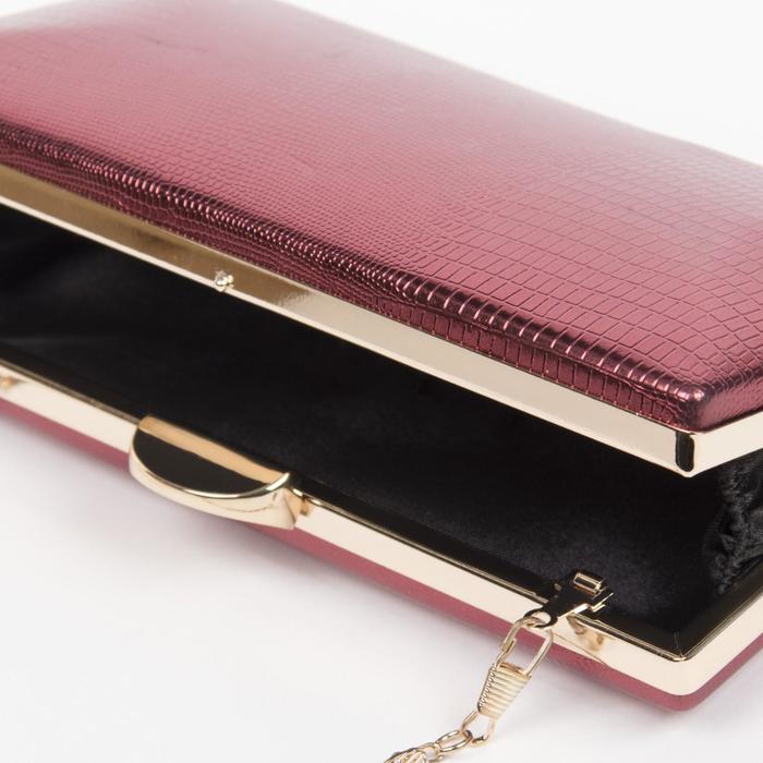 Клатч женский, отдел на фермуаре, длинная цепь, цвет бордовый