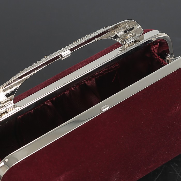 Клатч женский, отдел на фермуаре, длинная цепь, цвет бордовый