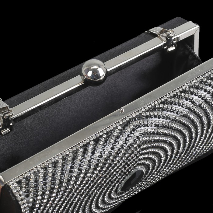 Клатч женский, отдел на фермуаре, длинная цепь, цвет чёрный