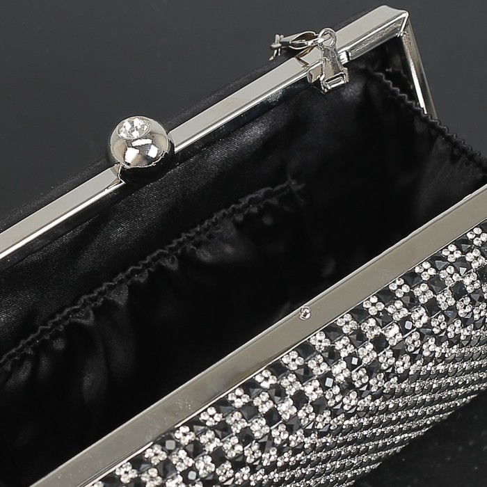 Клатч женский, отдел на фермуаре, длинная цепь, цвет чёрный