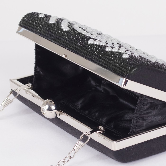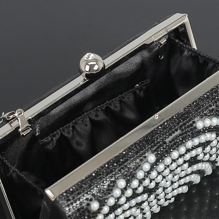Клатч женский, отдел на фермуаре, длинная цепь, цвет чёрный