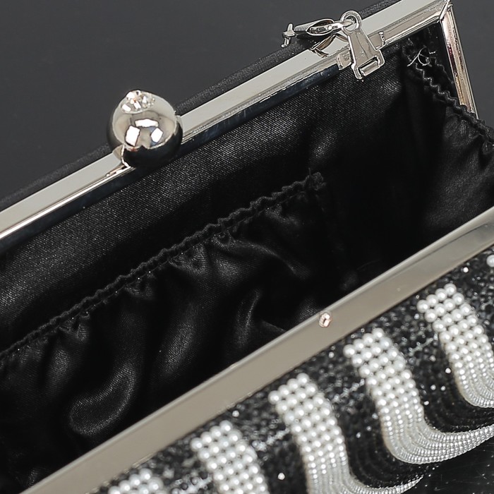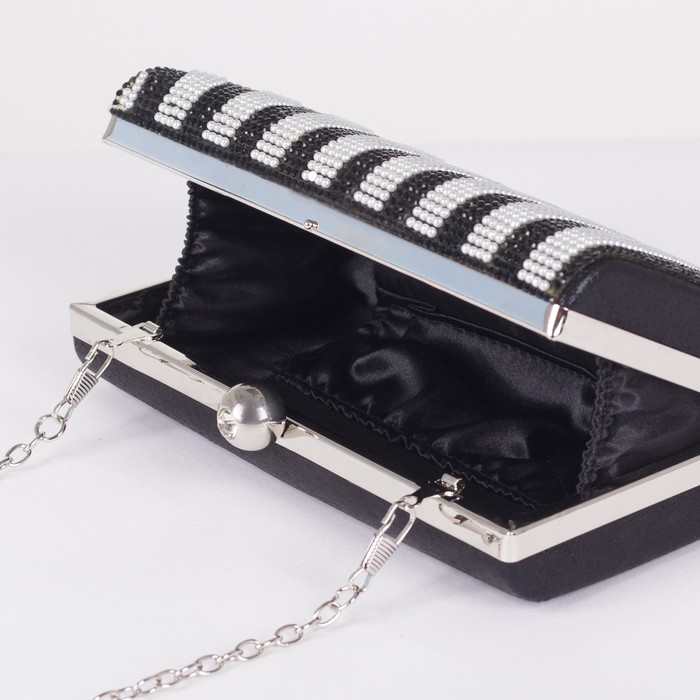 Клатч женский, отдел на фермуаре, длинная цепь, цвет чёрный