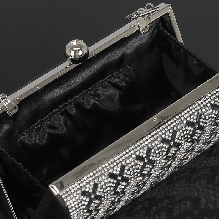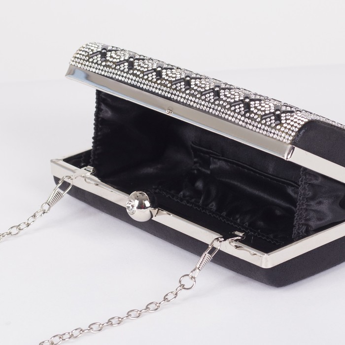 Клатч женский, отдел на фермуаре, длинная цепь, цвет чёрный