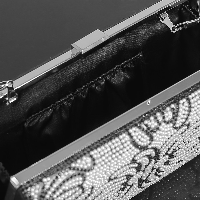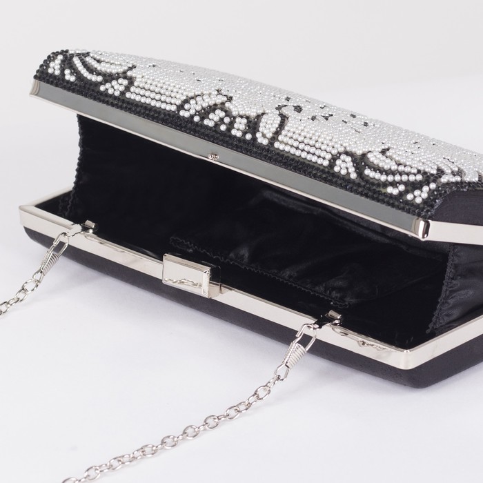 Клатч женский, отдел на фермуаре, длинная цепь, цвет чёрный
