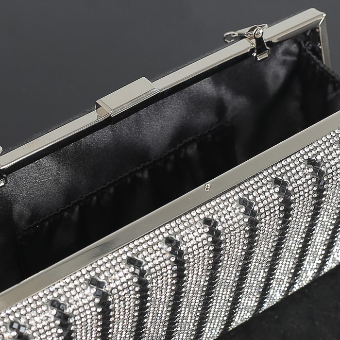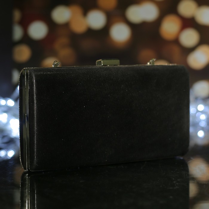 Клатч женский, отдел на фермуаре, длинная цепь, цвет чёрный