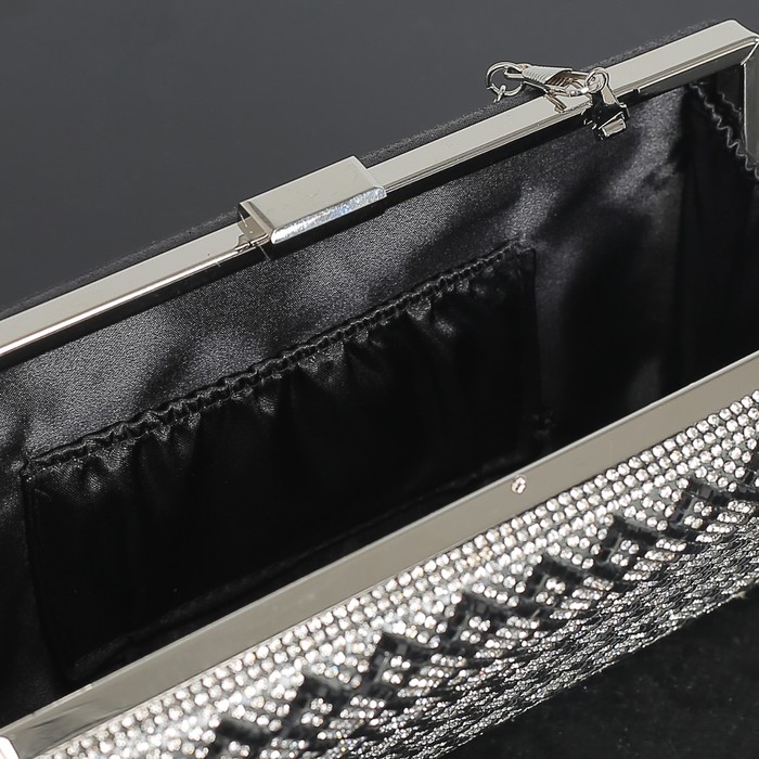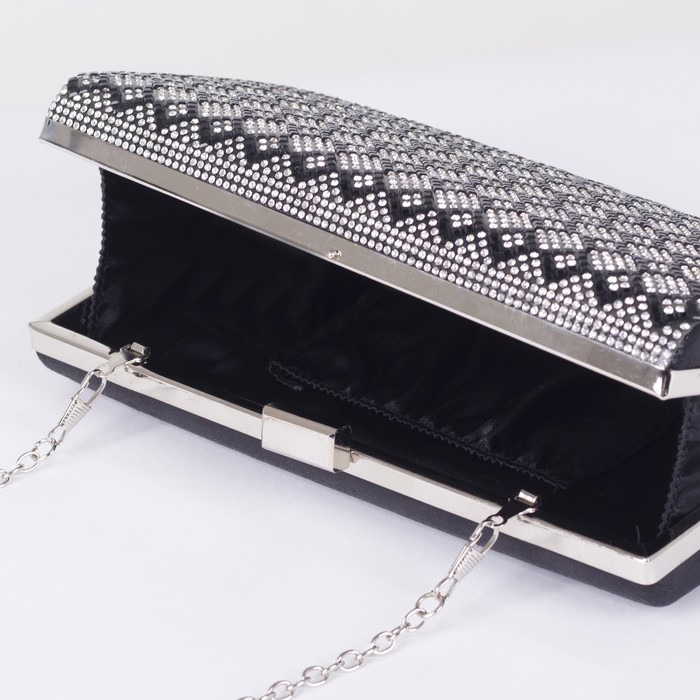 Клатч женский, отдел на фермуаре, длинная цепь, цвет чёрный