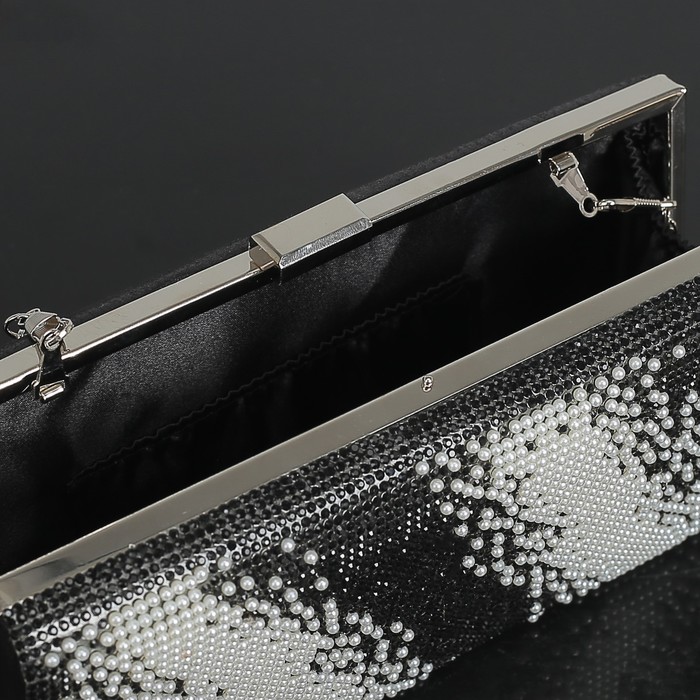 Клатч женский, отдел на фермуаре, длинная цепь, цвет чёрный