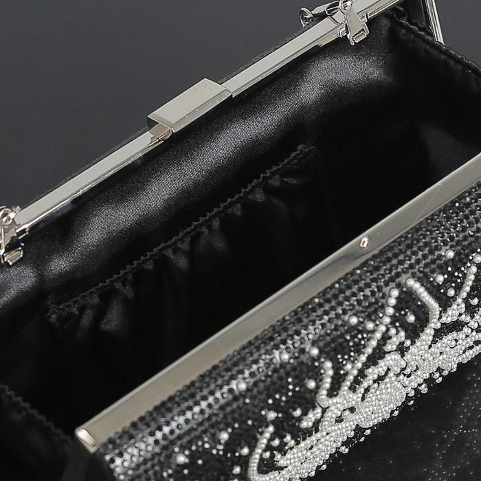 Клатч женский, отдел на фермуаре, длинная цепь, цвет чёрный