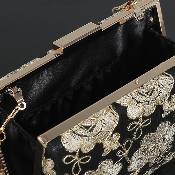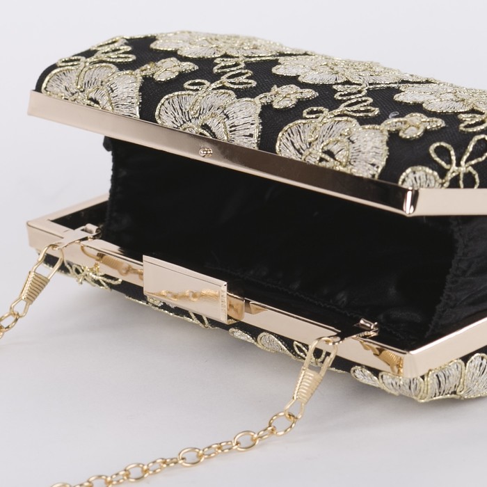 Клатч женский, отдел на фермуаре, длинная цепь, цвет чёрный