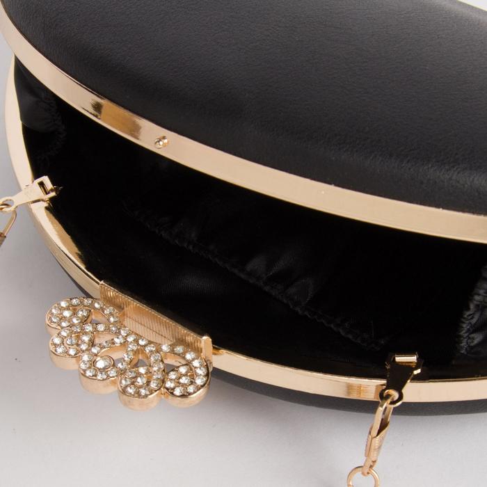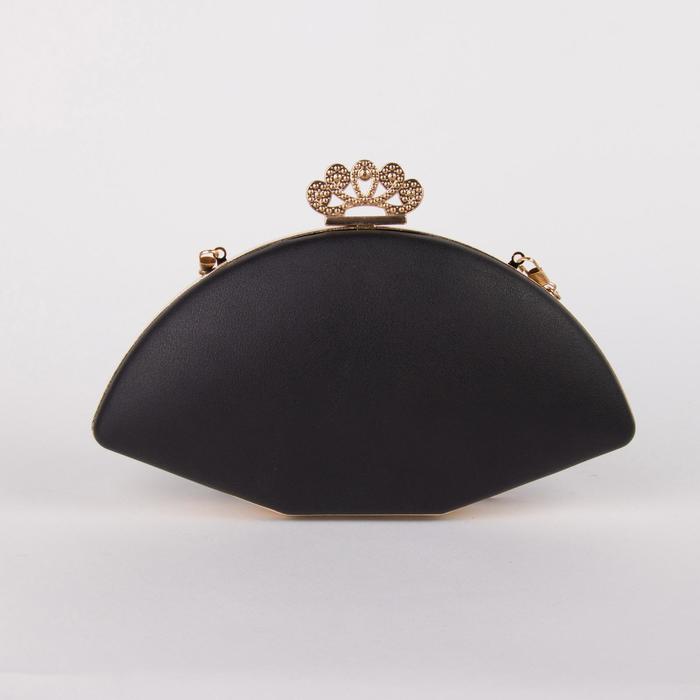 Клатч женский, отдел на фермуаре, длинная цепь, цвет чёрный