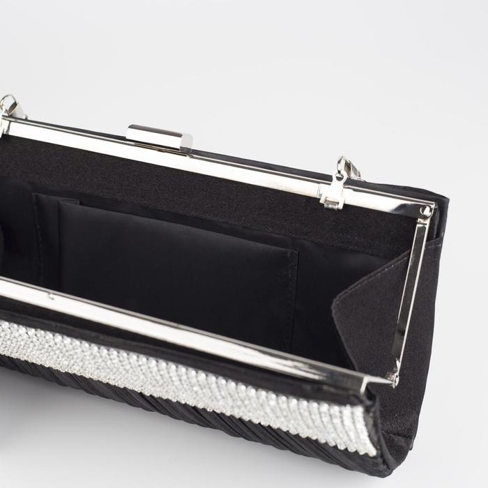 Клатч женский, отдел на фермуаре, длинная цепь, цвет чёрный