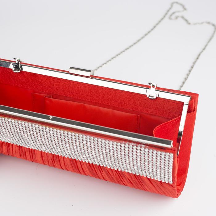 Клатч женский, отдел на фермуаре, длинная цепь, цвет красный