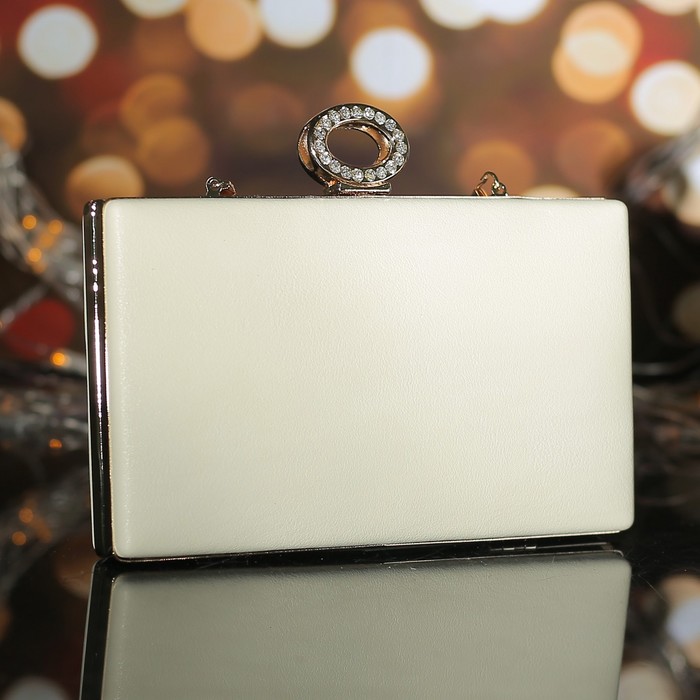 Клатч женский, отдел на фермуаре, длинная цепь, цвет молочный