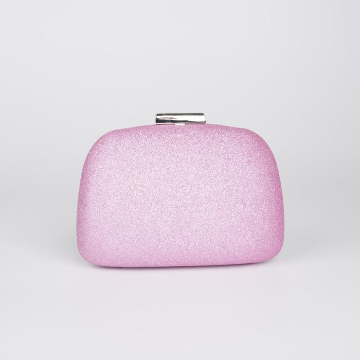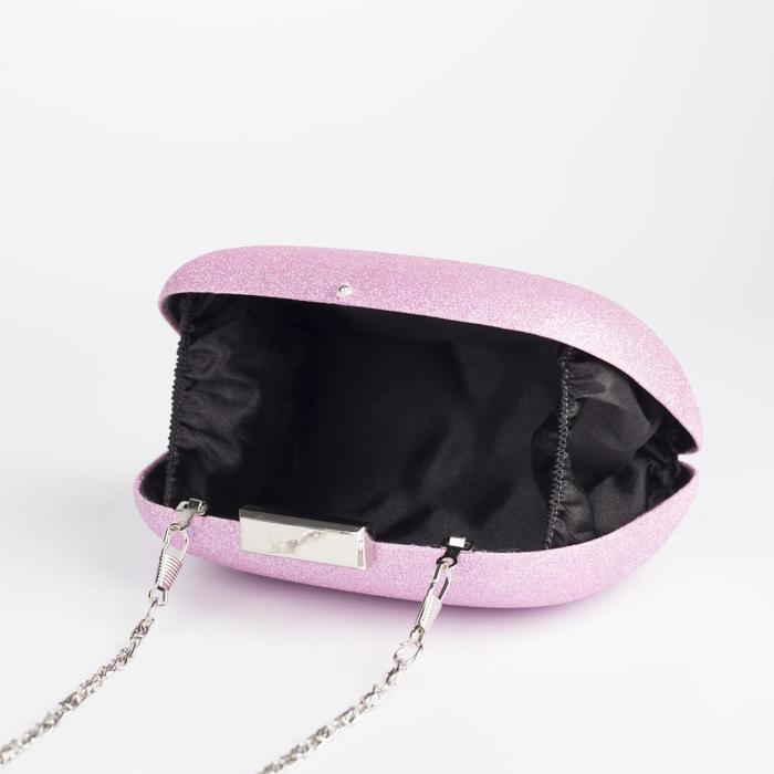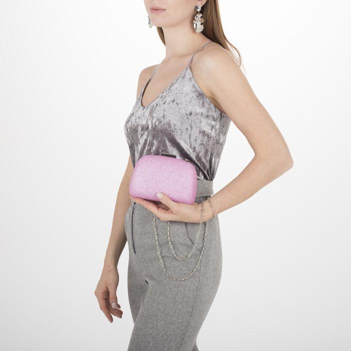 Клатч женский, отдел на фермуаре, длинная цепь, цвет розовый