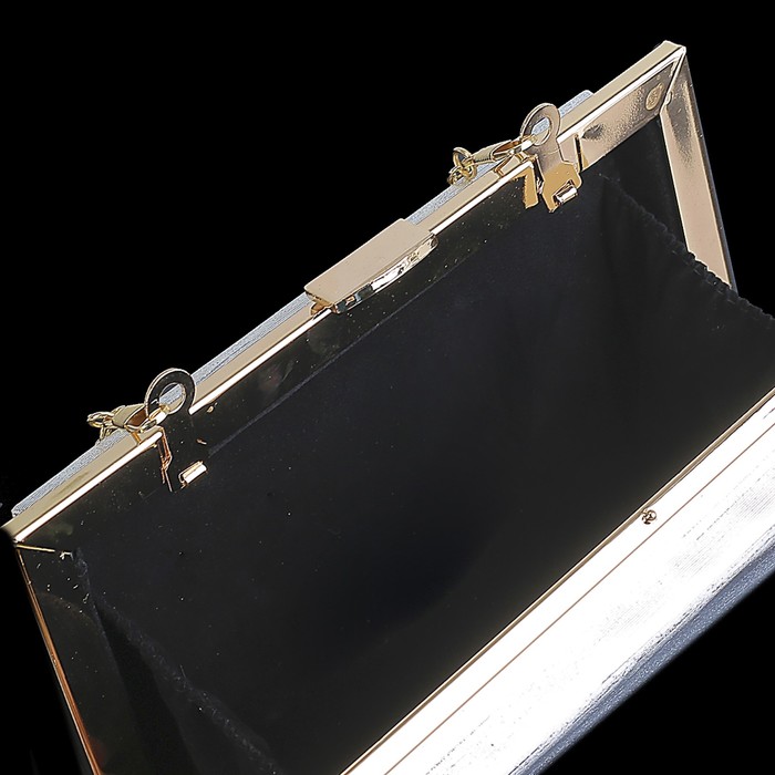 Клатч женский, отдел на фермуаре, длинная цепь, цвет серебристый