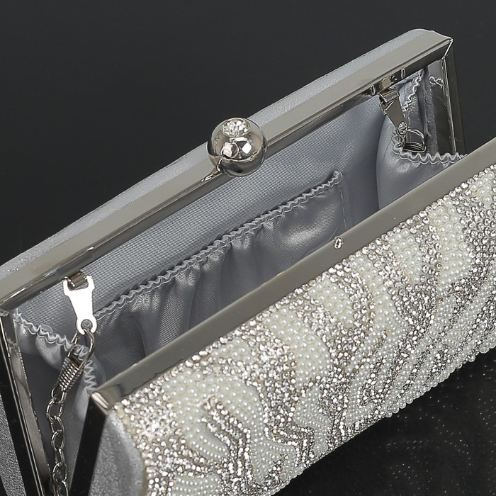 Клатч женский, отдел на фермуаре, длинная цепь, цвет серый