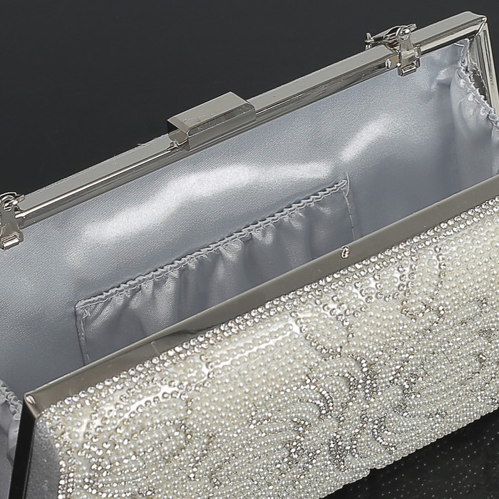 Клатч женский, отдел на фермуаре, длинная цепь, цвет серый