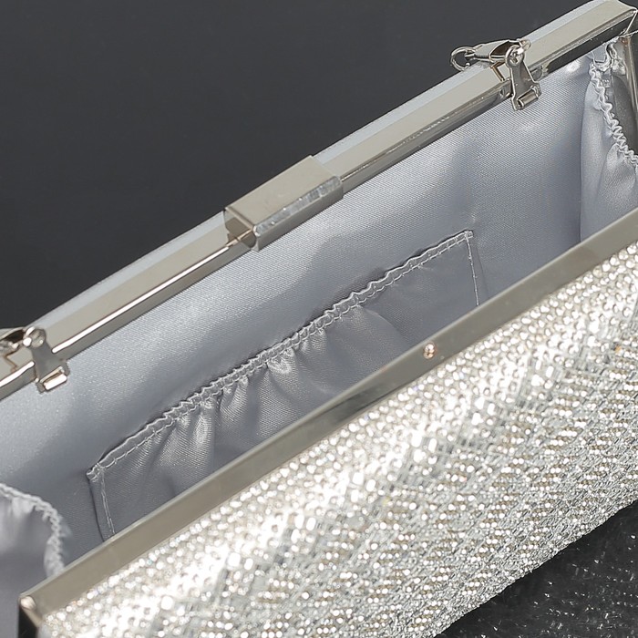 Клатч женский, отдел на фермуаре, длинная цепь, цвет серый