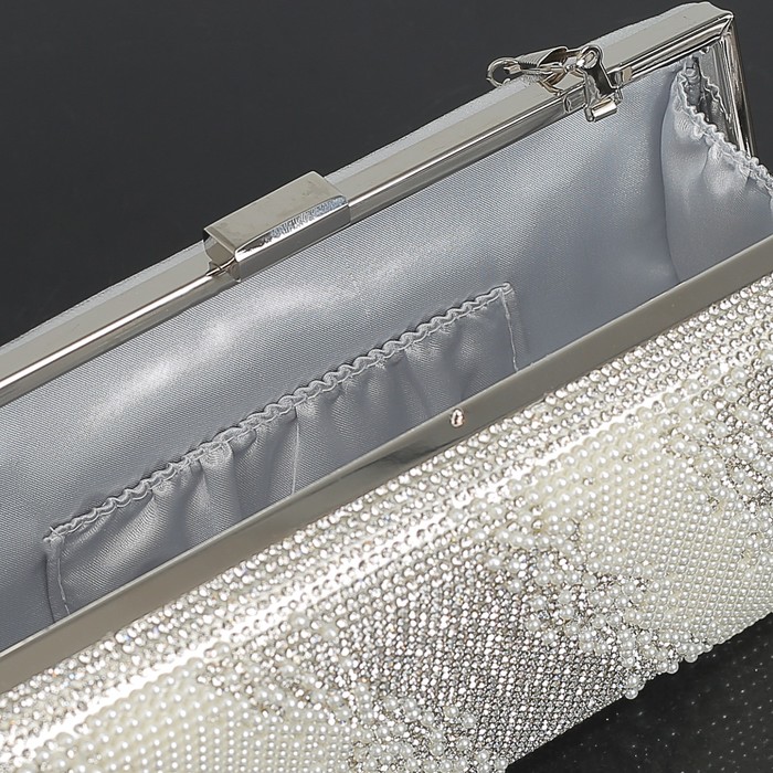 Клатч женский, отдел на фермуаре, длинная цепь, цвет серый