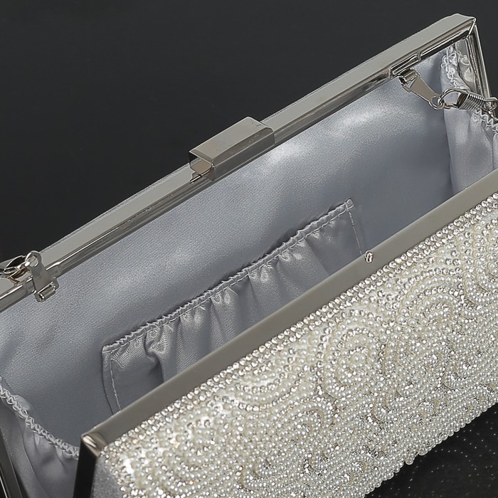 Клатч женский, отдел на фермуаре, длинная цепь, цвет серый