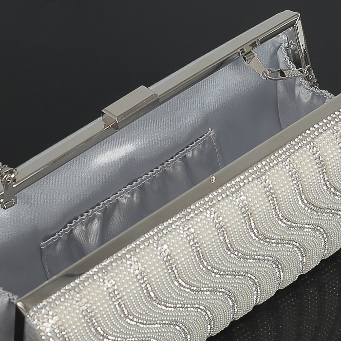 Клатч женский, отдел на фермуаре, длинная цепь, цвет серый