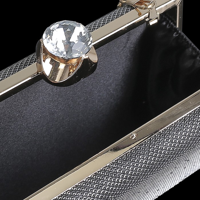 Клатч женский, отдел на фермуаре, длинная цепь, цвет серый
