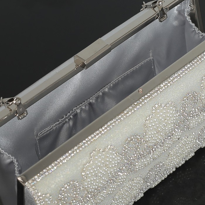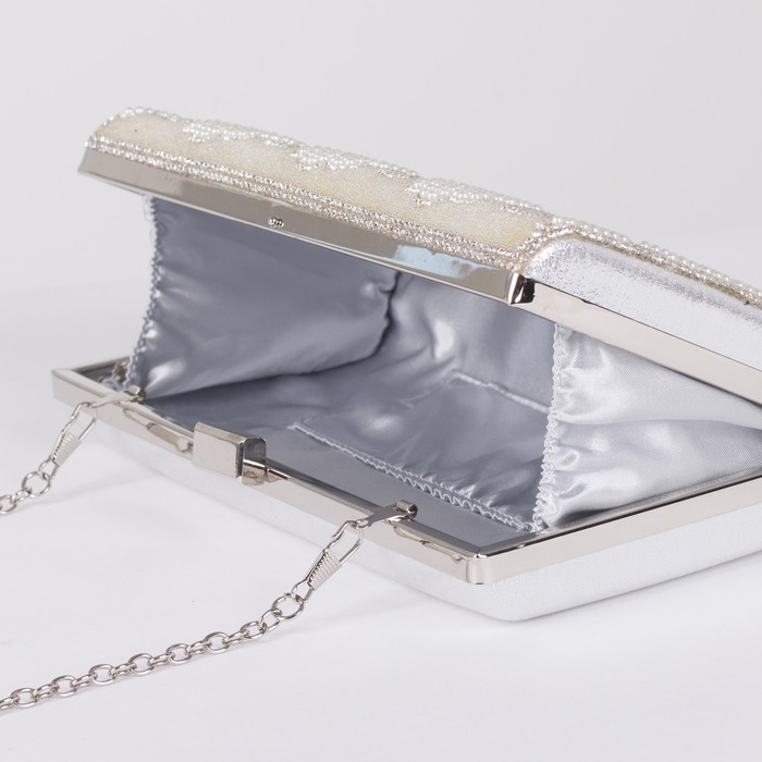Клатч женский, отдел на фермуаре, длинная цепь, цвет серый