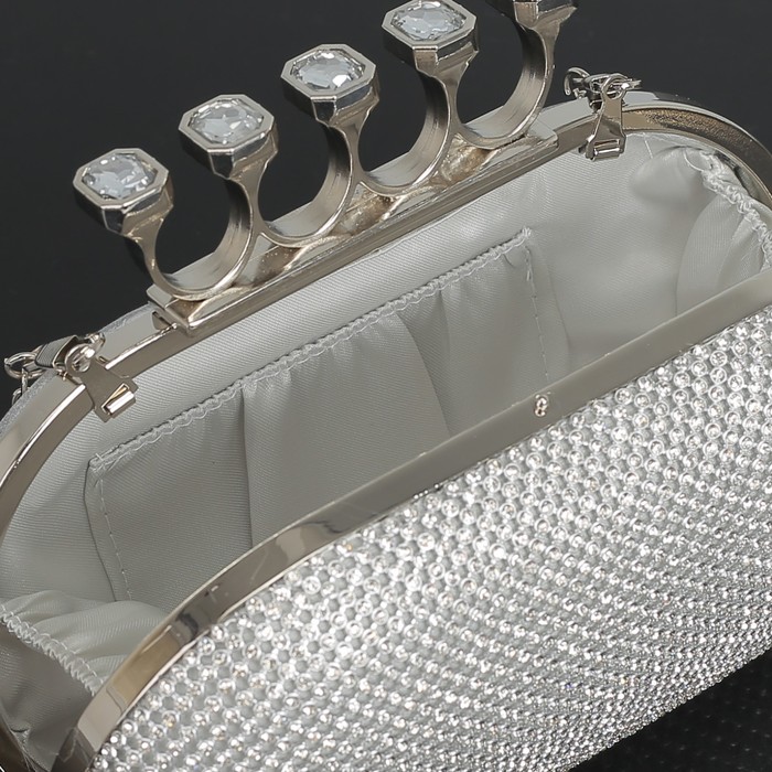 Клатч женский, отдел на фермуаре, длинная цепь, цвет серый