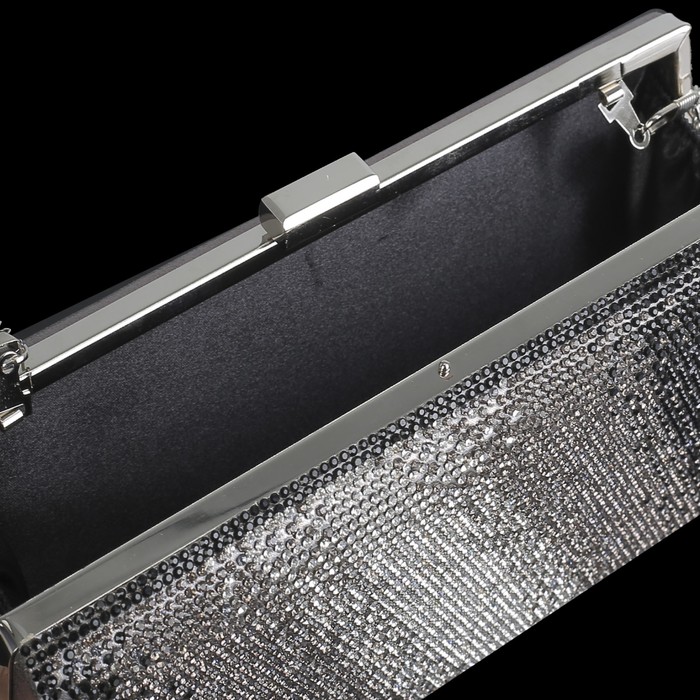 Клатч женский, отдел на фермуаре, длинная цепь, цвет серый