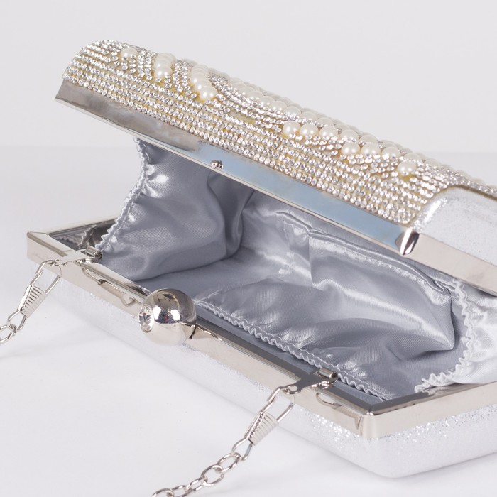 Клатч женский, отдел на фермуаре, длинная цепь, цвет серый