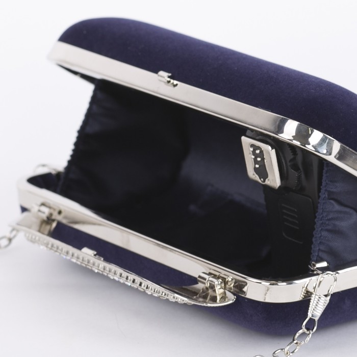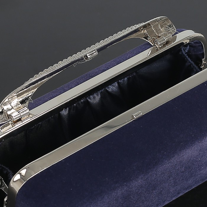 Клатч женский, отдел на фермуаре, длинная цепь, цвет синий