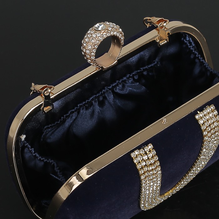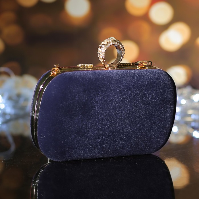 Клатч женский, отдел на фермуаре, длинная цепь, цвет синий