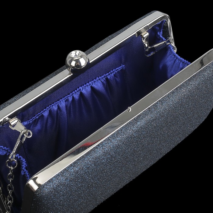 Клатч женский, отдел на фермуаре, длинная цепь, цвет синий