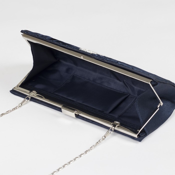 Клатч женский, отдел на фермуаре, длинная цепь, цвет синий