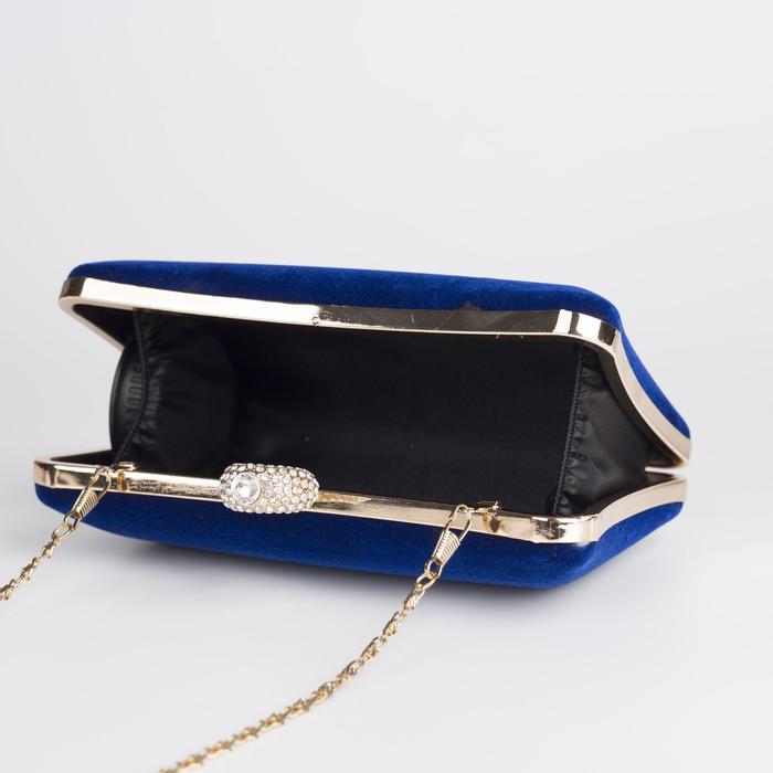 Клатч женский, отдел на фермуаре, длинная цепь, цвет синий